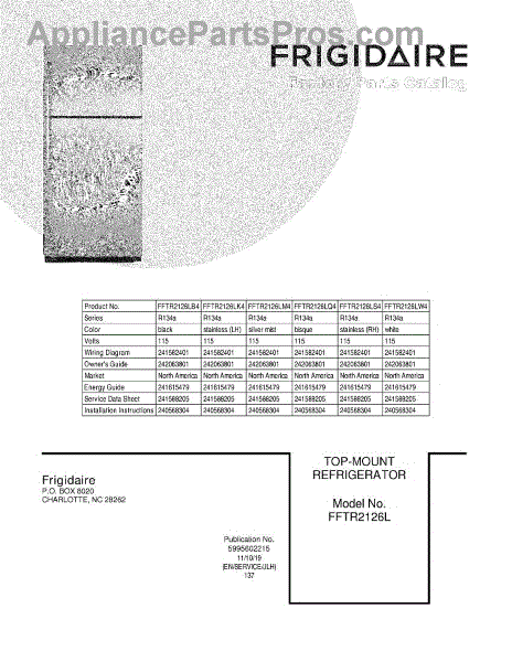 Parts for Frigidaire FFTR2126LB4: 01 - Cover Parts