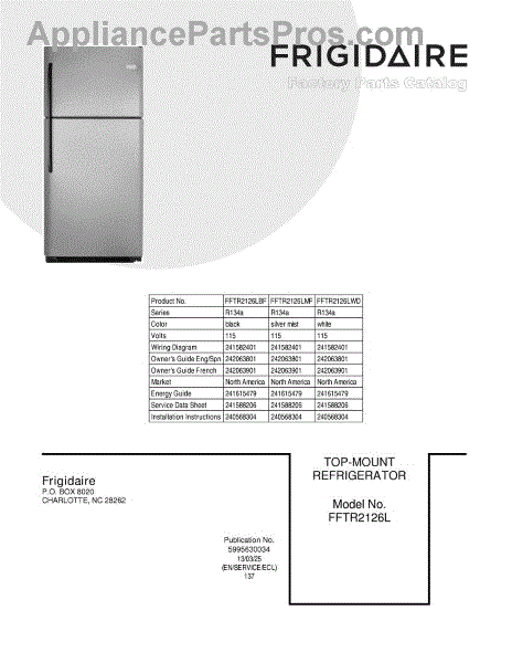 Parts for Frigidaire FFTR2126LMF: 01 - Cover Parts