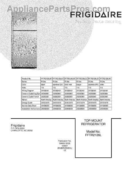 Parts for Frigidaire FFTR2126LQ7: 01 - Cover Parts