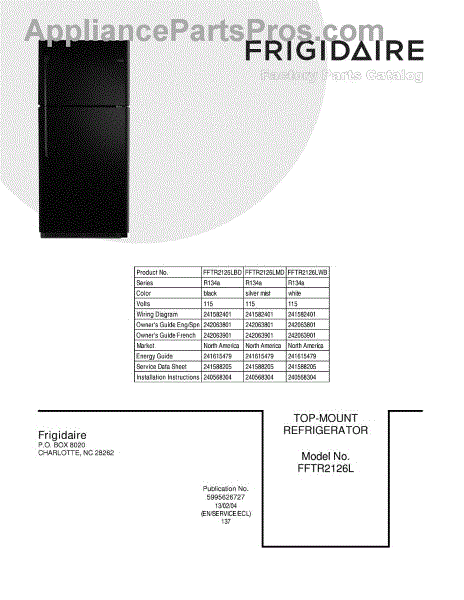 Parts for FFTR2126LWB