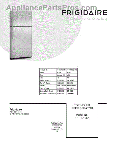 Parts for FFTR2126NW3