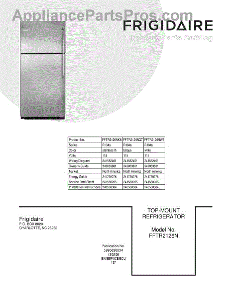 Parts for Frigidaire FFTR2126NW6: 01 - Cover Parts