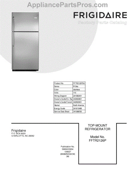Parts for Frigidaire FFTR2126PSA: 01 - Cover Parts