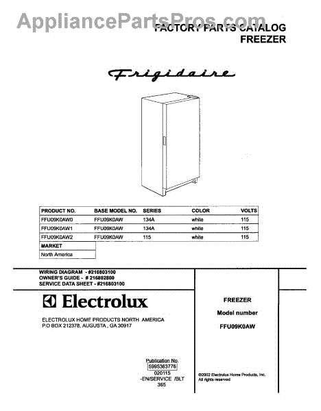 Parts for Frigidaire FFU09K0AW0: 01 - Cover Parts