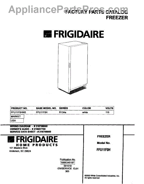 Parts for Frigidaire FFU11F0HW3: 01 - Cover Parts
