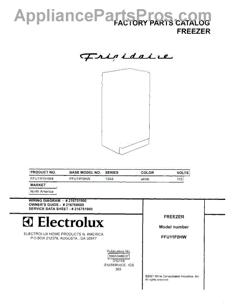 Parts for Frigidaire FFU11F0HW4: 01 - Cover Parts