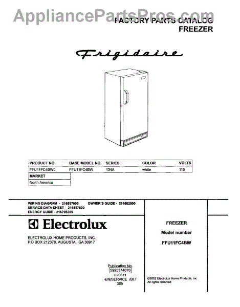 Parts for Frigidaire FFU11FC4BW0: 01 - Cover Parts