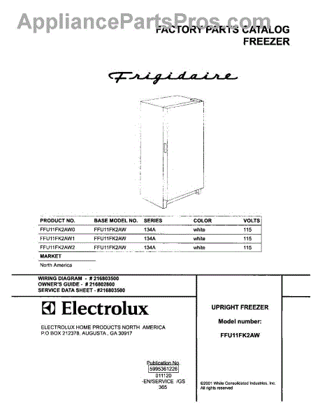 Parts for Frigidaire FFU11FK2AW2: 01 - Cover Parts