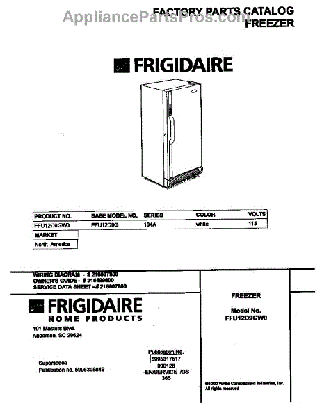 Parts for Frigidaire FFU12D9GW0: 01 - Cover Parts