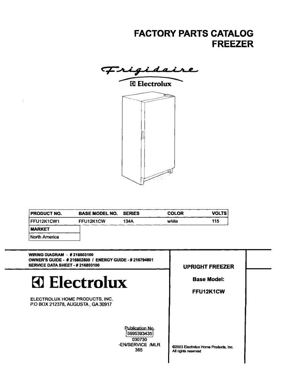 Parts for Frigidaire FFU12K1CW1: 01 - Cover Parts