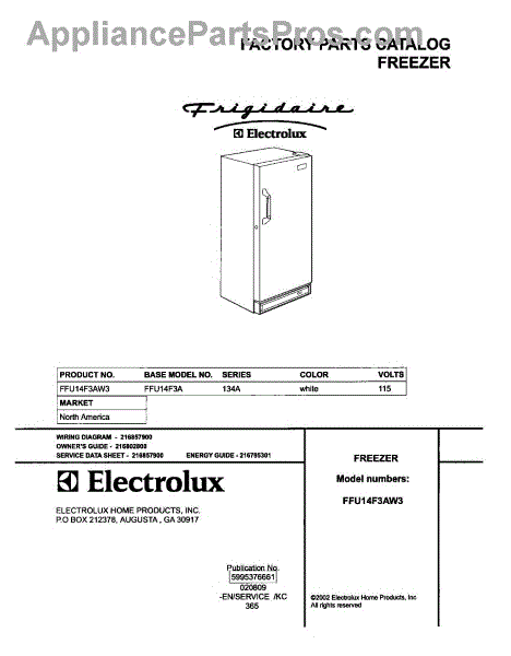 Parts for Frigidaire FFU14F3AW3: 01 - Cover Parts