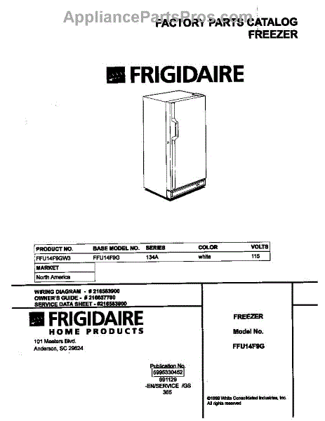 Parts for Frigidaire FFU14F9GW3: 01 - Cover Parts