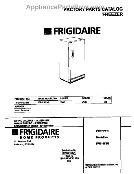 Parts for Frigidaire FFU14F9GW4: 01 - Cover Parts