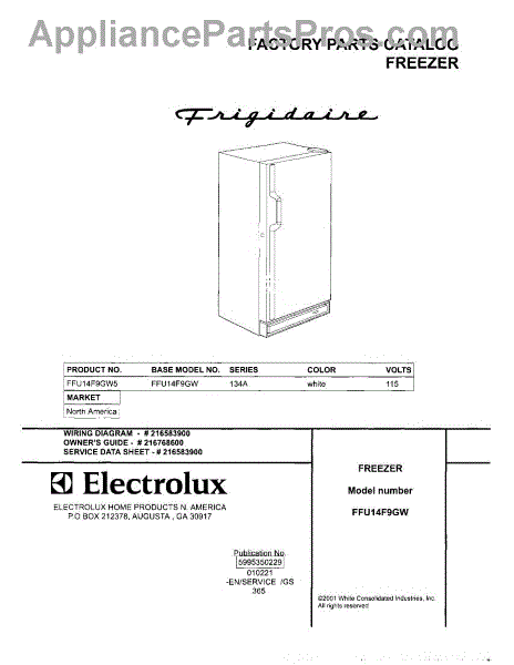 Parts for Frigidaire FFU14F9GW5: 01 - Cover Parts