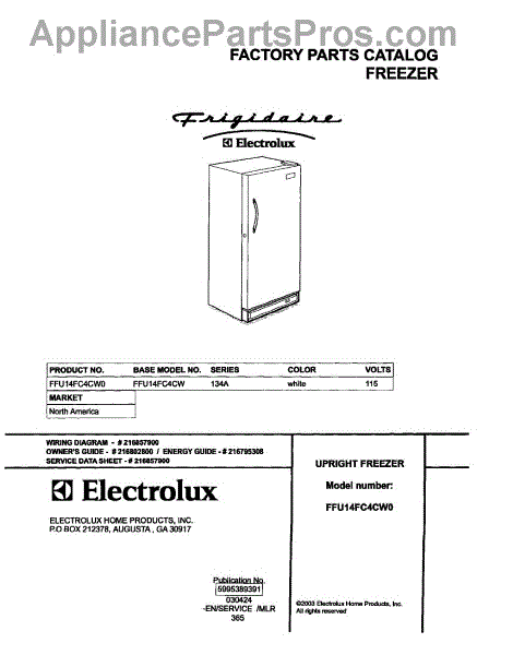 Parts for Frigidaire FFU14FC4CW0: 01 - Cover Parts