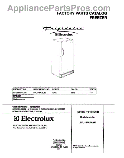 Parts for Frigidaire FFU14FC6CW1: 01 - Cover Parts