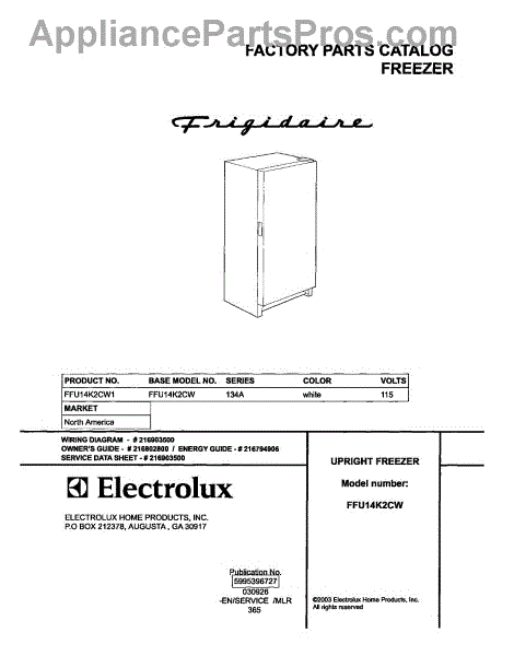 Parts for Frigidaire FFU14K2CW1: 01 - Cover Parts
