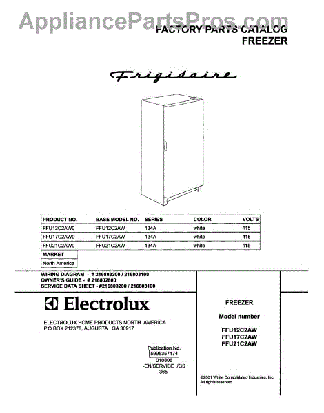 Parts for Frigidaire FFU17C2AW0: 01 - Cover Parts