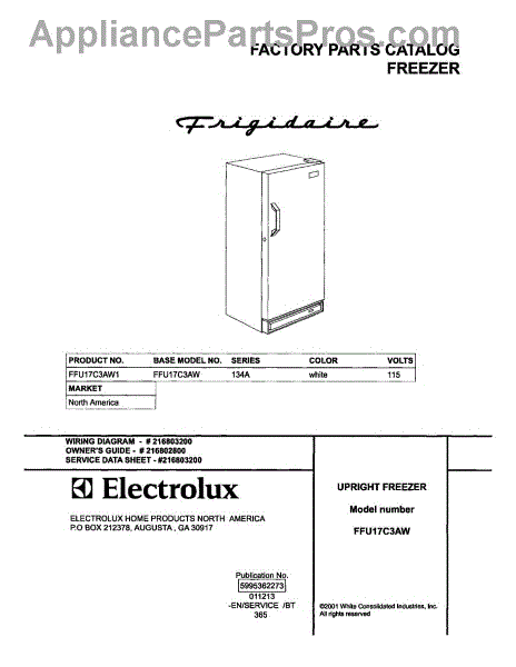 Parts for Frigidaire FFU17C3AW1: 01 - Cover Parts