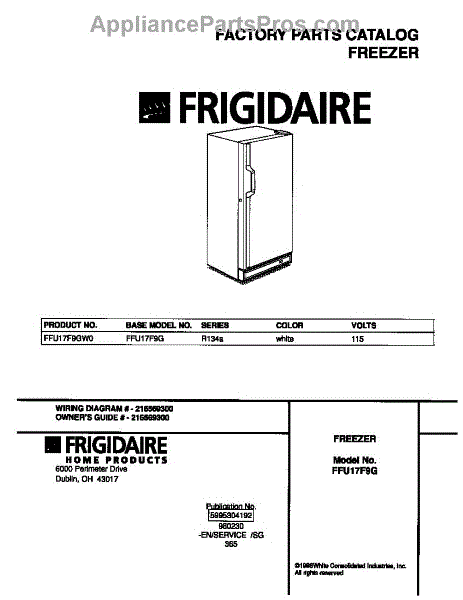 Parts for Frigidaire FFU17F9GW0: 01 - Cover Parts