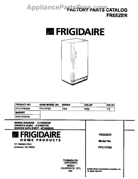 Parts for Frigidaire FFU17F9GW3: 01 - Cover Parts