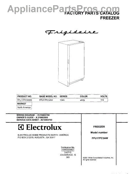 Parts for Frigidaire FFU17FC3AW0: 01 - Cover Parts