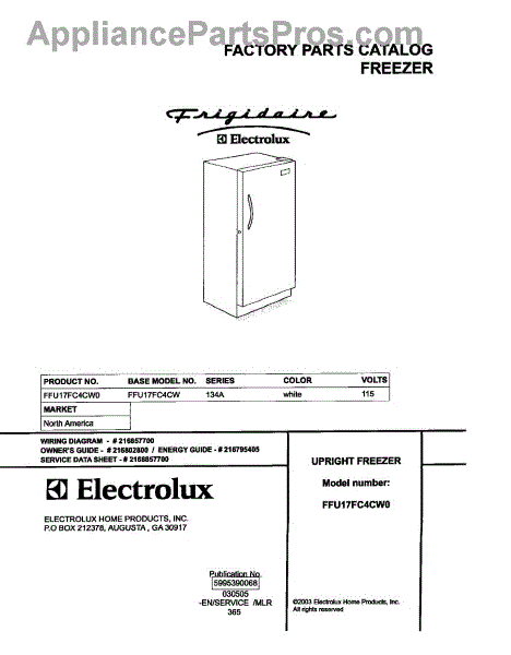 Parts for Frigidaire FFU17FC4CW0: 01 - Cover Parts