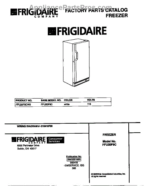 Parts for Frigidaire FFU20F9CW2: 01 - Cover Parts