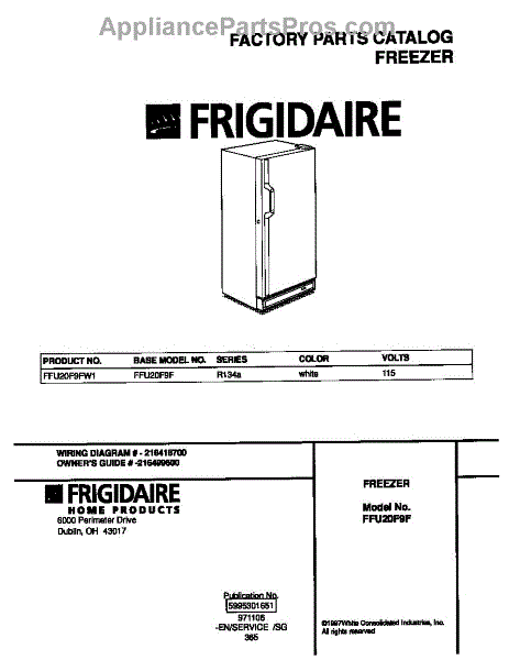 Parts for Frigidaire FFU20F9FW1: 01 - Cover Parts