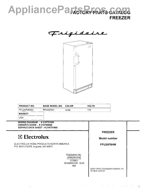 Parts for Frigidaire FFU20F9HW3: 01 - Cover Parts