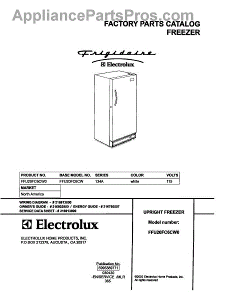 Parts for Frigidaire FFU20FC6CW0: 01 - Cover Parts