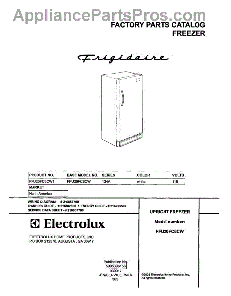 Parts for Frigidaire FFU20FC6CW1: 01 - Cover Parts