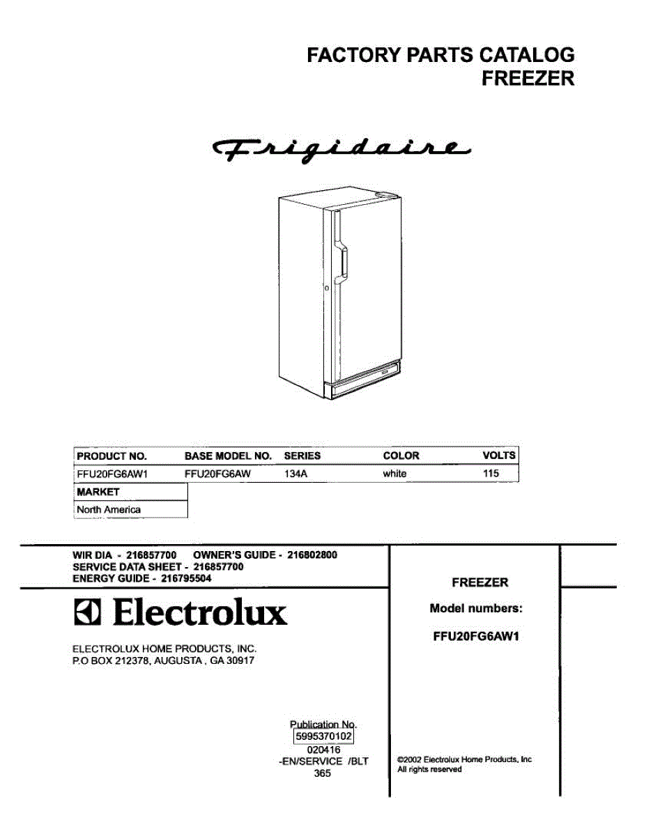 Parts for Frigidaire FFU20FG6AW1: 01 - Cover Parts