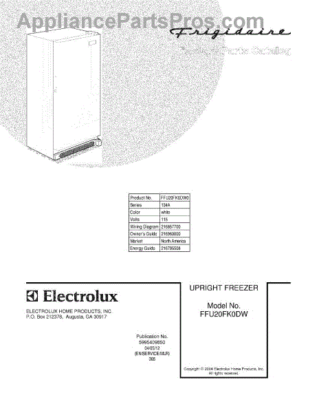 Parts for Frigidaire FFU20FK0DW0: 01 - Cover Parts