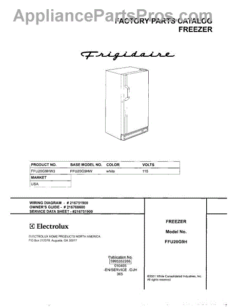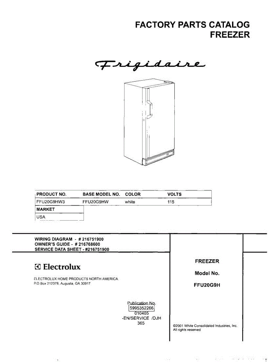 Parts for Frigidaire FFU20G9HW3: 01 - Cover Parts