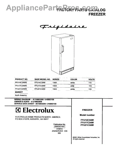 Parts for Frigidaire FFU21C3AW0: 01 - Cover Parts
