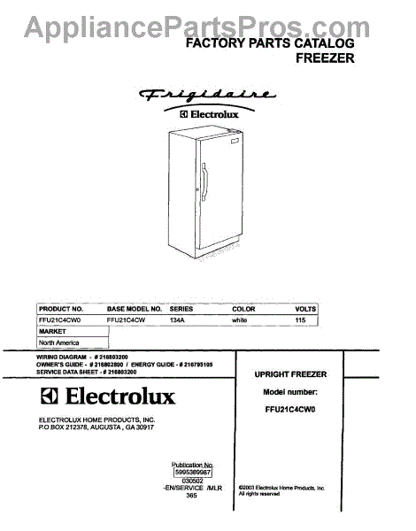 Parts for Frigidaire FFU21C4CW0: 01 - Cover Parts