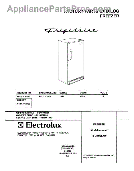 Parts for Frigidaire FFU21C5AW0: 01 - Cover Parts