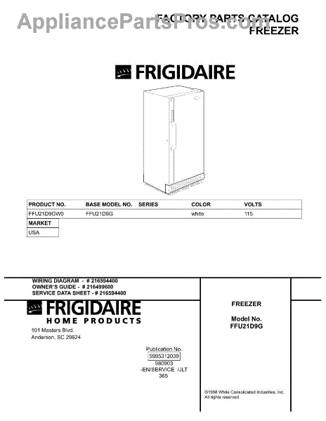 Parts for Frigidaire FFU21D9GW0: 01 - Cover Parts