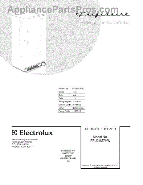 Parts for Frigidaire FFU21M7HWC: 01 - Cover Parts