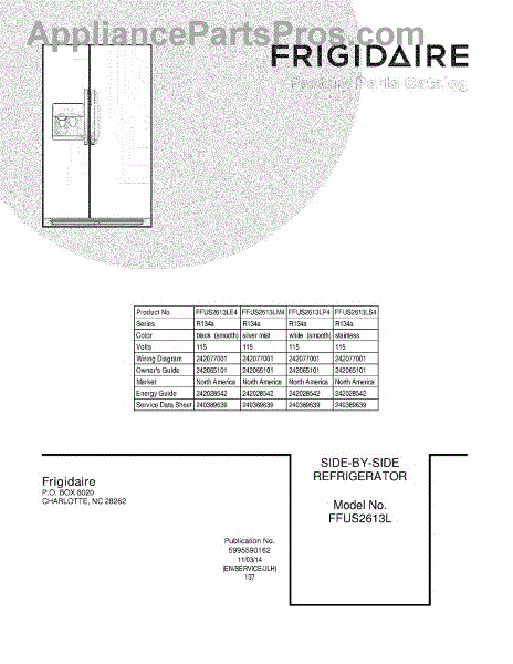 Parts for Frigidaire FFUS2613LE4: 01 - Cover Parts