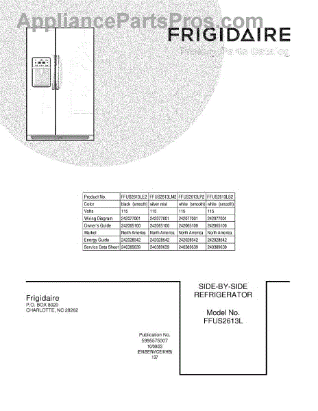 Parts for Frigidaire FFUS2613LM2: 01 - Cover Parts