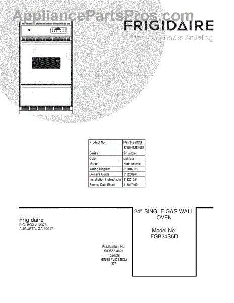 Parts for Frigidaire FGB24S5DCG: 01 - Cover Parts