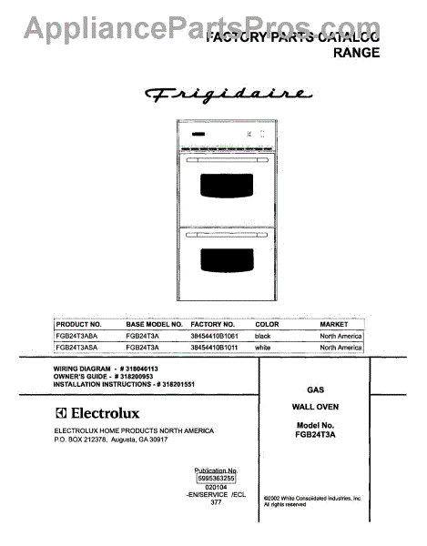 Parts for Frigidaire FGB24T3ABA: 01 - Cover Parts