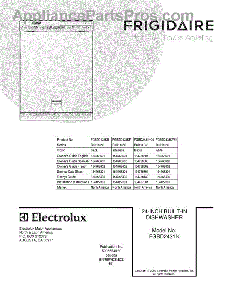 Parts for Frigidaire FGBD2431KB1: 01 - Cover Parts