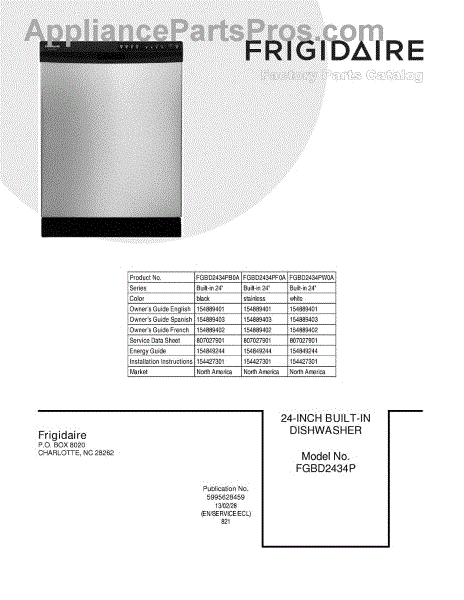Parts for Frigidaire FGBD2434PB0A: 01 - Cover Parts
