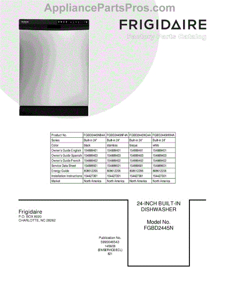 Parts for Frigidaire FGBD2445NW4A: 01 - Cover Parts