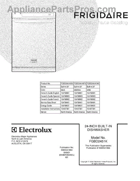 Parts for Frigidaire FGBD2451KW0: 01 - Cover Parts