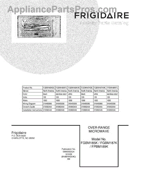 Frigidaire Microwave Parts