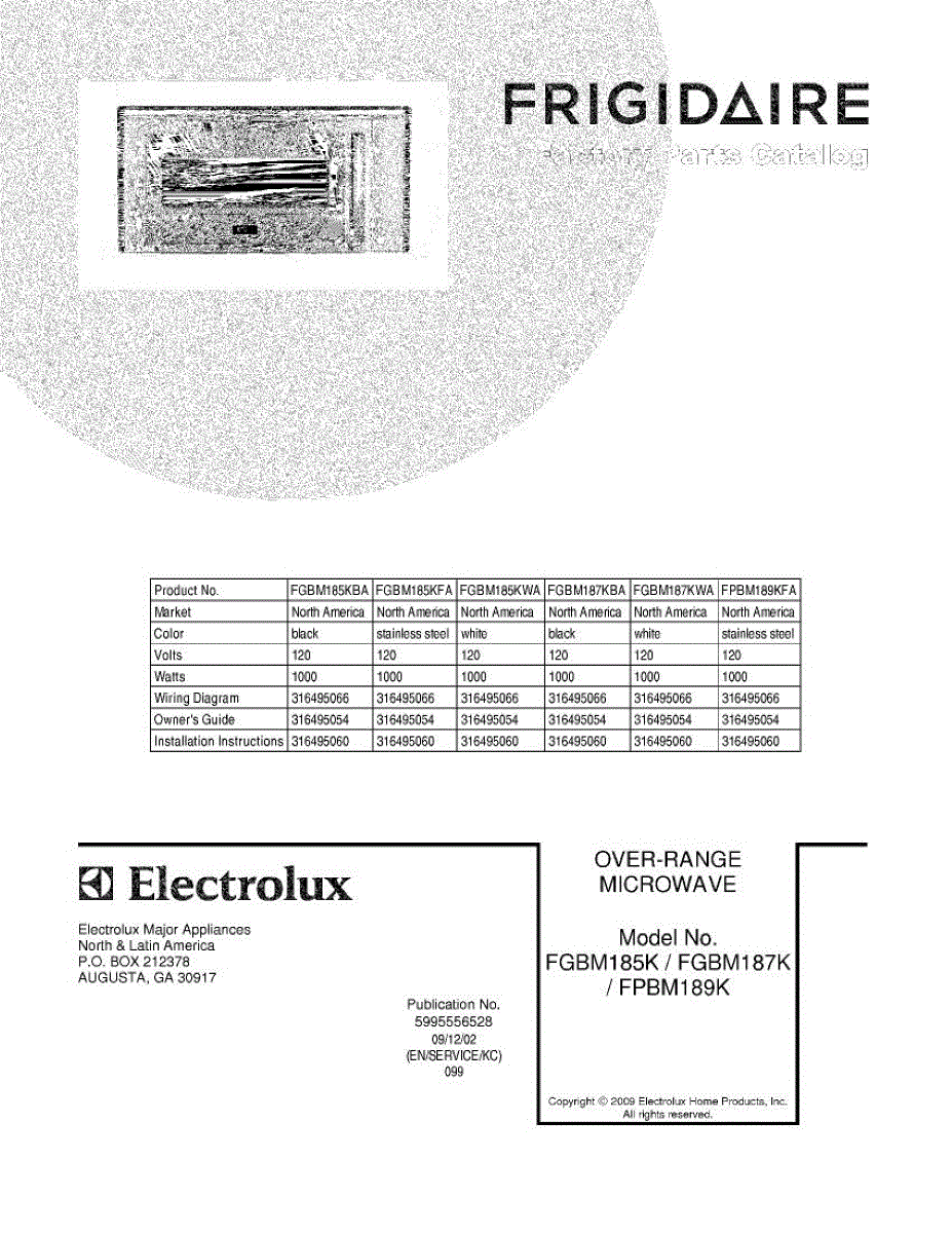 Parts for Frigidaire FGBM187KBA: 01 - Cover Parts